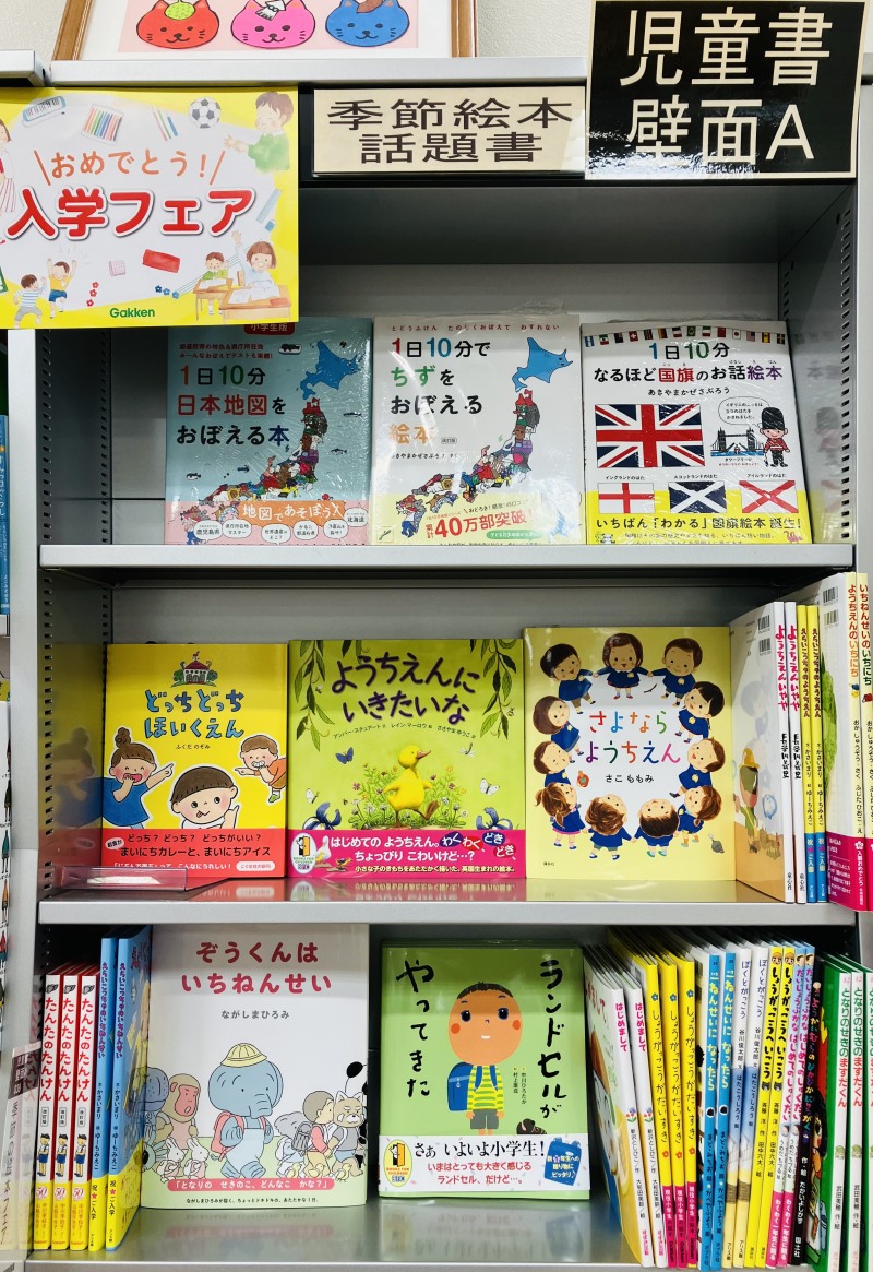 新しい場所・新しい出会いにワクワク・ドキドキ。はじめてのようちえんに、はじめての小学校。そんな場所を題材にしたえほんをあつめました。ピヨくんは、たまごから孵ったばかりの頃から、はやく幼稚園に行きたがっていました。ところが、はじめて幼稚園に行く前の晩になってドキドキがきて。「ようちえんにいきたいな」アンバー・スチュアート:ささやまゆうこ〔訳〕(徳間書店)。ある日、家に帰ってみると大きなプレゼントが届いていました。「ランドセルがやってきた」中川ひろたか(徳間書店)。入学・入園の贈り物にもピッタリのえほん。児童書コーナーにて展開中。