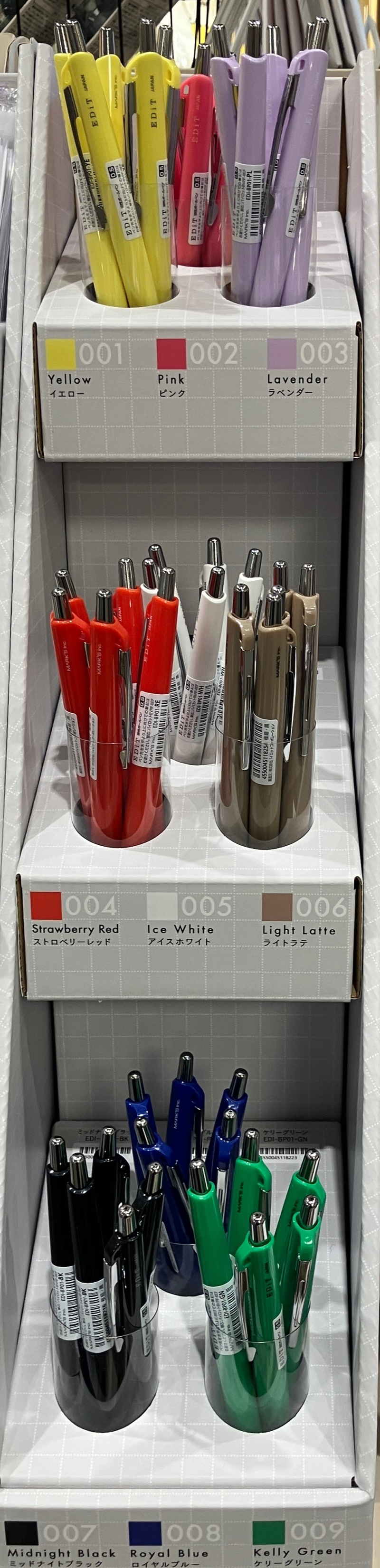先日、『EDiT』シリーズが入荷しました。今回当店に入荷したのは、PVCカバー付きノート「EDiT 手帳用紙を使った小さな方眼ノート・B7」とそれに適した油性ボールペンです。色はライトラテ、ミッドナイトブラック、ケリーグリーン、ピンク、ラベンダー、ロイヤルブルー、ストロベリーレッド、アイスホワイト、イエローの9色です。