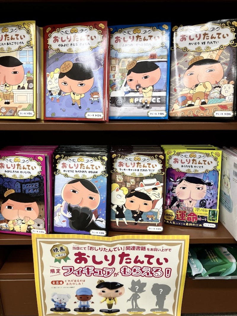 見た目はおしり、推理は名探偵な「おしりたんてい」が事件を解決していく、大人気児童書シリーズ『おしりたんてい』のフェアを開催中です。『おしりたんてい』関連書籍をご購入の方に限定フィギュア(全5種類)をお渡ししております。フィギュアはなくなり次第終了致します。『おしりたんていファイル』第11弾である『おしりたんてい あらたなるかいとう』も発売中です。
