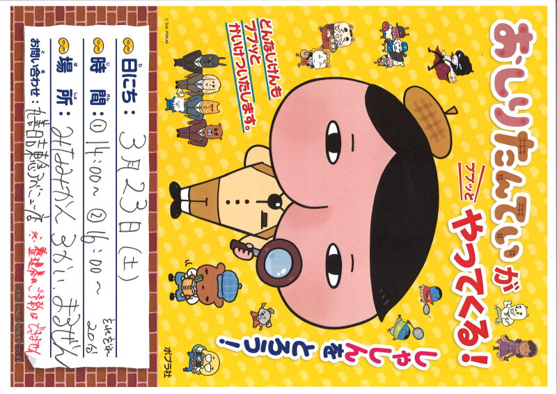 3/23(土)、おしりたんていが丸善日吉東急アベニュー店にやって来ます!