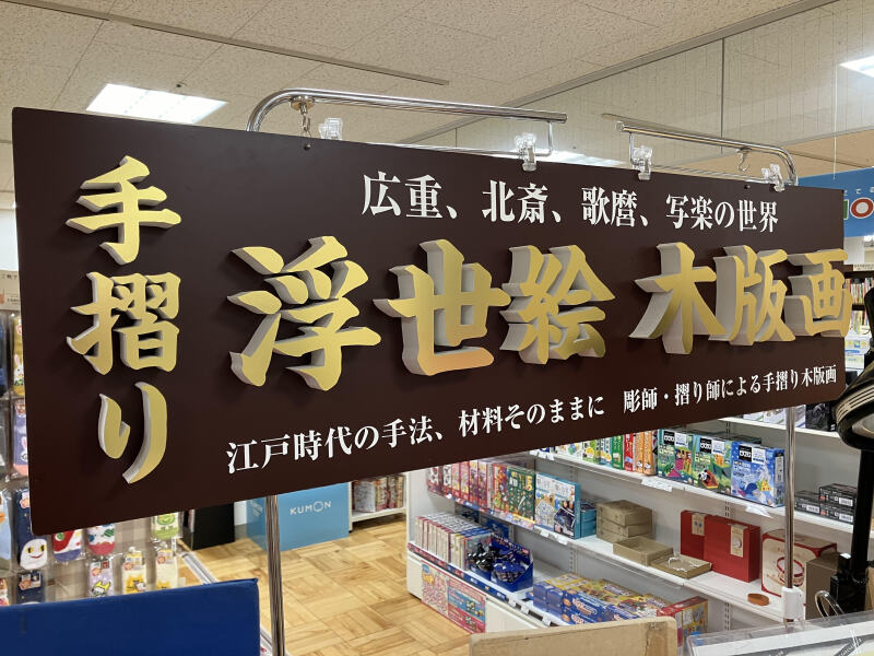 【9階 ジュンク堂書店内にて手摺り浮世絵木版画の展示販売会を開催しております】皆さんは浮世絵を観たことがありますでしょうか。安藤広重「東海道五十三次」や葛飾北斎「富嶽三十六景」などを思い描く方も多いのでは。作品は江戸時代の手法・材料そのままに摺師による手摺り木版画で表現されています。手漉き和紙に一枚一枚手で摺り込まれてゆく浮世絵は時を経る程に独特の感じが生まれ、現代の印刷とはまた違った味わいを見せてくれます。ぜひこの機会に広重や北斎はたまた歌麿の写楽の世界に触れてみませんか。