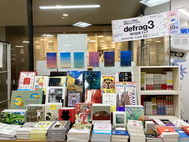 店頭では、203タイトルを前半と後半に分け、テーマ別に丸善ジュンクのスタッフが選んだ美術書を展開しています。カタログに載っているスタッフコメントと一緒に読んでいただけるとより一層楽しめます。美術書カタログ「defrag3」は店頭にて無料配布中です。