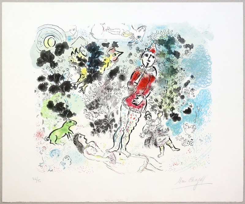 ※画像:マルク・シャガール『フルートを持つ道化師』リトグラフ