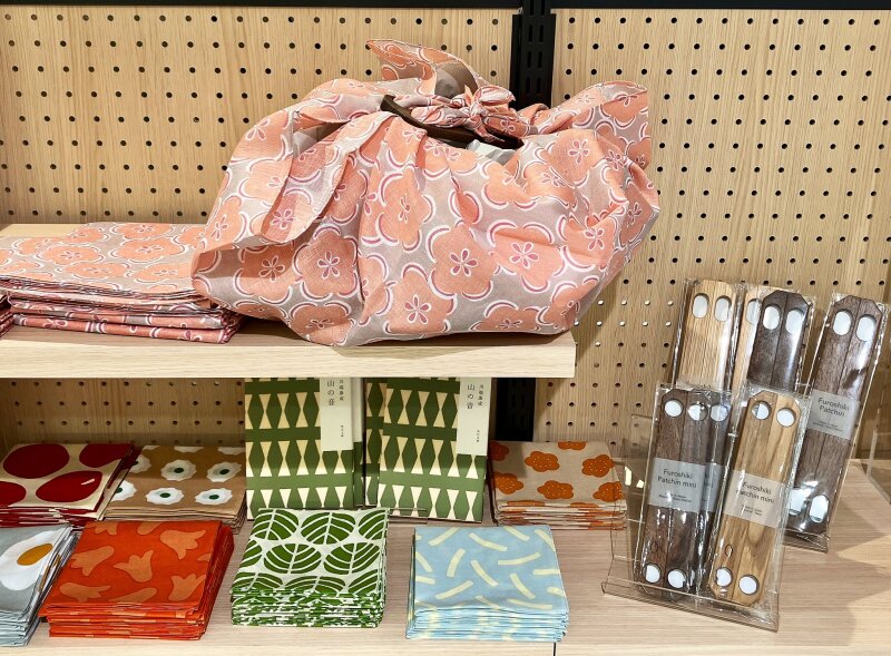 てぬぐいブランド「かまわぬ」の、てぬぐいや風呂敷、バンダナ、ハンカチなどがレジ前にずらり!かまわぬとコラボした表紙の文庫もあわせて展開しています。セットして簡単にバッグにすることができるパーツセット『Furoshiki Patchin』もございます。頭にかぶる、いろいろ包む、贈り物にする、旅のおともに…。「かまわぬ」の手ぬぐいの使い方を、564種類集めた書籍『かまわぬの手ぬぐい使い方手帖』もあわせて展開していますので、ぜひ参考に!