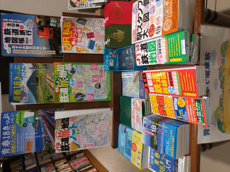 青春18きっぷとは、年齢にかかわらず誰でも利用できるきっぷで、春・夏・冬に発売されています。そのきっぷを使ってお得に電車の旅を楽しんでみませんか?青春18きっぷの関連本や鉄道路線図、あつめて楽しい駅スタンプ本などをコーナーにあつめてみました。店頭にて展開中です、ご来店お待ちしております。