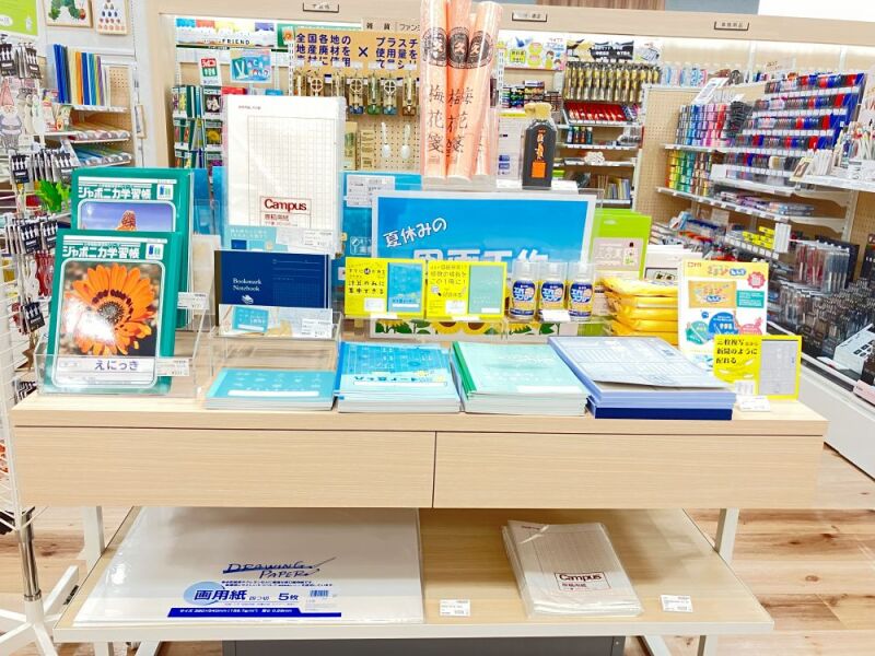 当店では夏休みの宿題に必要な画用紙、作文用紙、