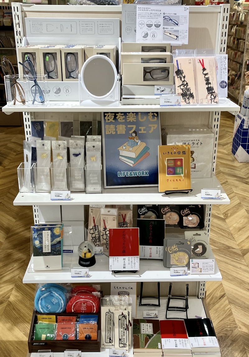 エルコミューンの、半透明のクリア素材に箔押しのワンポイントがかわいいクリアブックマークや、読書好き必見!フォントがそのまま「しおり」になった『文字のしおり』が当店初登場。他にも読書の時間がより楽しくなるようなグッズを集めてフェア棚で展開しています。スタッフおすすめの文庫も一緒に展開していますので、セットで贈り物にするのもおすすめです。