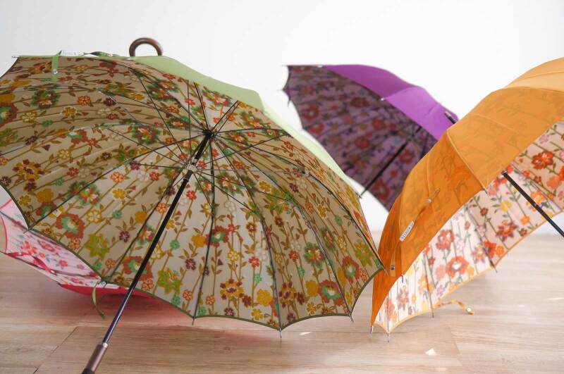 昭和5年に創業。80年以上にわたり東京日本橋にて傘の製作を行ってまいりました。江戸職人が技術と情熱をかけて作った逸品です。甲州織、正倉院裂など伝統ある傘生地を使用した傘を展示即売しておりますのでぜひ一度お立ち寄りください。残暑の日差し除けや長雨の空の下、きれいな傘の下で気持ちも軽やかに。彩り豊かな生地の中からお気に入りの1本に出会ってください。1Fイベントスペース