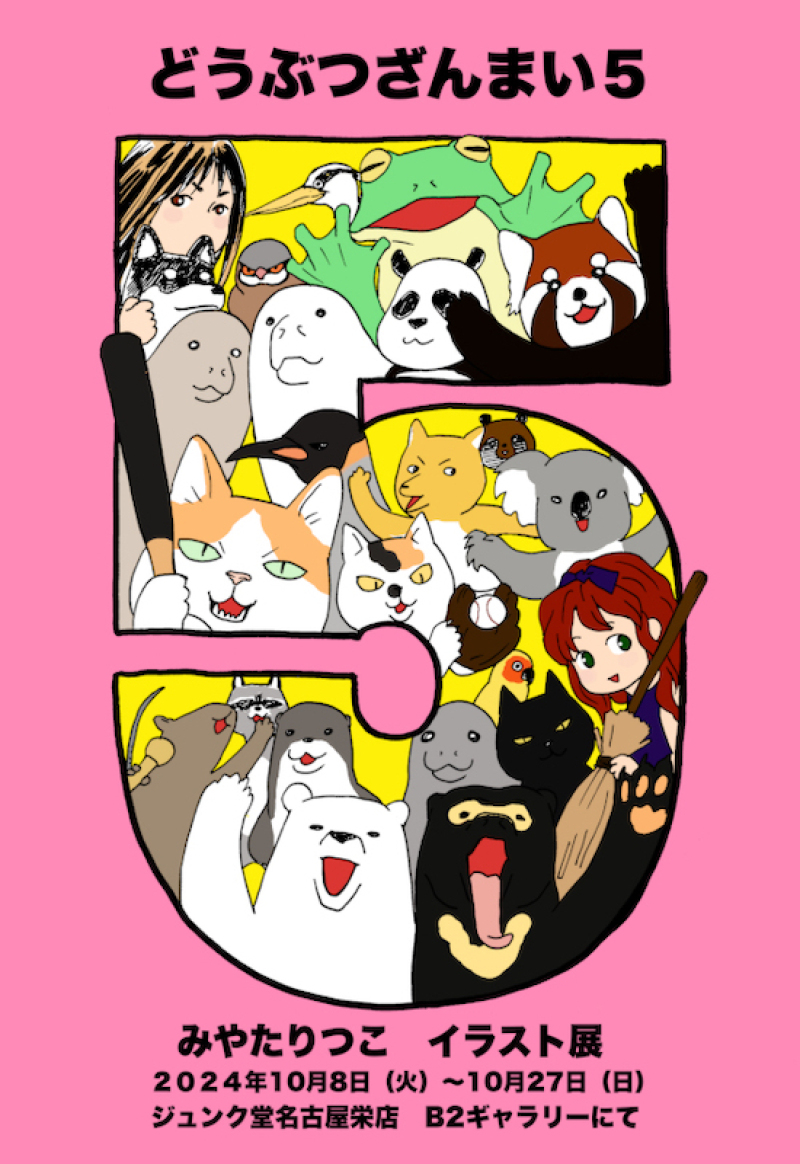 みやたりつこさんのイラスト展「どうぶつざんまい5」を開催中です。