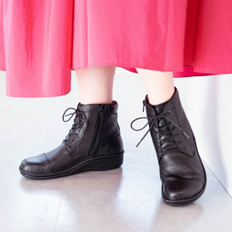 外反母趾や甲高・幅広など、足に悩みがある方にも安心の木型と製法、インソールが特徴。