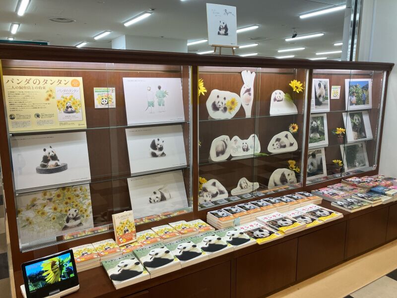 著者は5年間タンタンに密着して番組を制作したNHKの杉浦大悟さん、挿絵は中村愛さんで、中村さんの描くタンタンと飼育員の姿が大きなパネルになっています。