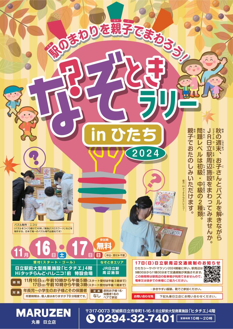 駅のまわりを親子でまわろう!秋の週末、お子さんと一緒にパズルを解きながら、日立駅周辺施設をまわってみませんか。