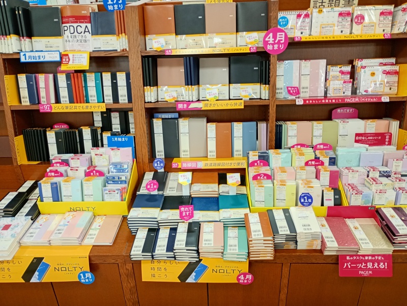 ジュンク堂書店芦屋店ではただ今、新年度の必需品である4月始まりの手帳・スケジュール帳を特設販売しています。デジタルでの予定管理が広く浸透した今でもなお、紙の手帳や日記には絶大な支持が寄せられています。手書きだから記憶に定着しやすく、いつでも気軽に見返せて、頭の中を整理するにも役立つなど、とても便利で信頼できるアイテムといえます。