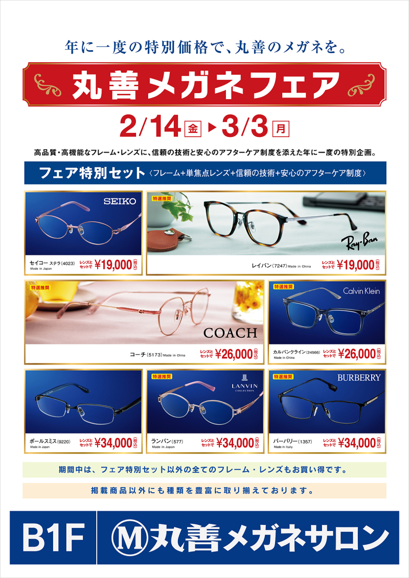 期間中は、丸善特選の高品質なフレーム、先進設計のレンズを